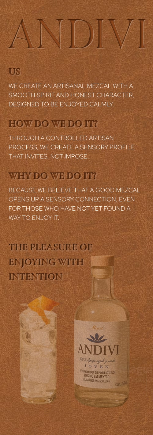 It is here where Andivi is born, the mezcal that carries the sky in its name. “Andivi”, derived from the word “sky” in the Mixtec language, is a name that evokes the idea of something sublime, something that transcends the earth and connects with the divine.